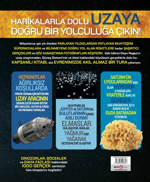 Milyarlarca ışık yılı uzaklıktaki parlayan yıldızlardan, süper kütleli patlayan süpernovalara ve bilinmeze doğru giden roketlere kadar uzayın büyüleyici gerçeklerini keşfedin. Bu kapsamlı kitap, inanılmaz evrenimizi büyüleyici bir turla tanıtıyor ve uzay araştırmalarından, güneş sistemimize, galaksimize ve ötesine kadar çeşitli konularda ilginç gerçeklerle dolu.