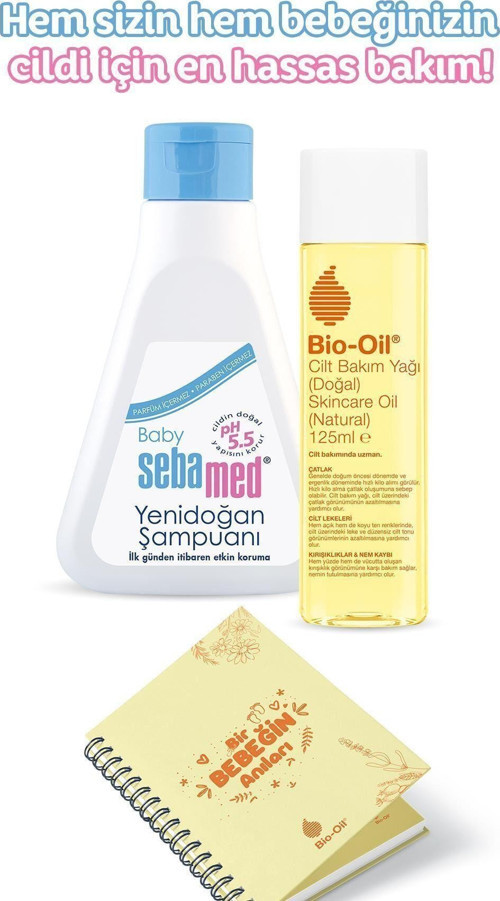 Bio-Oil Natural ile Bebeğin ve Senin için Hassas Bakım Seti, Bio-Oil Natural Cilt Bakım Yağı 125 ml, Sebamed Baby Yenidoğan Şampuan 250 ml ve Bir Bebeğin Anıları Anı Defterinden oluşmaktadır. Eşsiz yolcuğunda bebeğin ve senin için en hassas bakımın tadını çıkar!