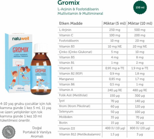 Natuwell Gromix L-arjinin Fosfotidilserin Multivitamin Şurup 150ml 3 lü Paket