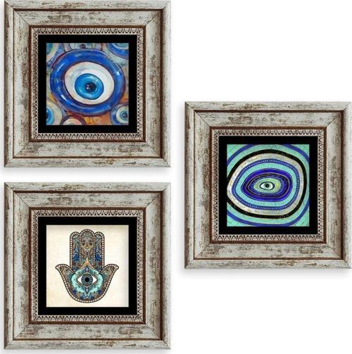 Nazar 3 lü Set Çerçeveli Taş Tablo