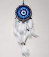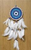 Nazar boncuğu desenli ürünümüzün çemberi jüt ip ile sarılmıştır. Rüya kapanımızın nazar boncuğu deseni el örgüsüdür. Düş kapanımız beyaz renk bol kuş tüyleri ile süslenmiştir. El emeği, göz nuru rüya kapanımız yerli üretimdir. Ürünümüzün yuvarlak kısmı 17 santimetre çapındadır. Ürünümüz ip dahil 63 santimetre boyundadır. Duvar süsümüzü ister kendiniz için, isterseniz hediye etmek için tercih edebilirsiniz.