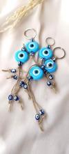 HD Marketim Nazar Boncuk Anahtarlık Mavi 10 Adet Kötü Göz Kovucu Nazar Hand Made Hasır Nazarlı Anahtarlık