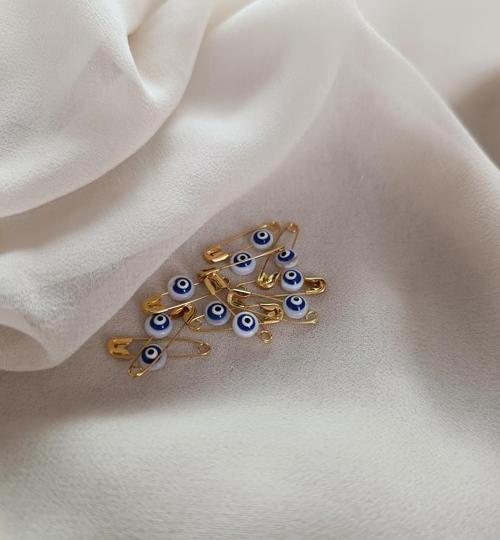 Nazar Boncuklu Sedef Maşallahlık İğneli 10 Adet 0.6 mm Çeyiz Bohçası İğnesi