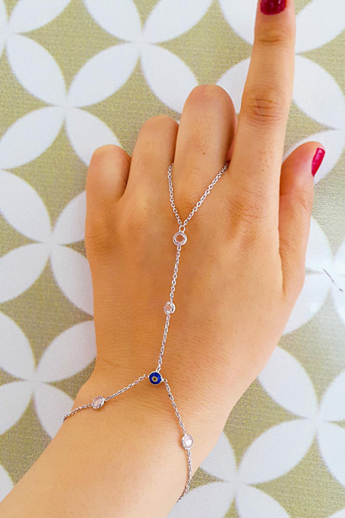 Ürün Hakkında : Zirkon taşlı nazar boncuklu rodyumlu 925 ayar gümüş şahmeran modeli.