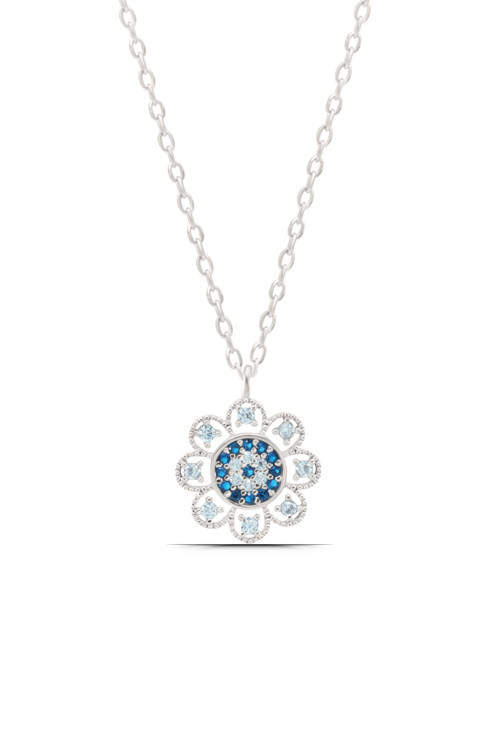 Nazar Temalı 925 Ayar Gümüş Kadın Kolye, kötü enerjilerden korunmanın ve şansı davet etmenin zarif bir simgesidir. Nazar boncuğu motifli bu kolye, geleneksel Türk kültüründe yaygın olarak kullanılan koruyucu bir sembolü modern ve zarif bir tasarımla birleştiriyor. 925 ayar gümüşten özenle işlenmiş olan bu kolye, günlük şıklığınızı tamamlarken aynı zamanda sizi olası negatif etkilerden koruyacak bir kalkan sunuyor.