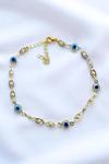- Zarif tasarımıyla dikkat çeken nazar göz inci mekik halhal, her kıyafete şıklık katmak için idealdir.; - Lak kaplama malzemesi sayesinde uzun süreli kullanım ve parlaklığını koruma özelliği sunar.; - Pırlanta gibi parlayan inci taşları ile göz alıcı bir görünüm sağlar ve özel günlerde tercih edilir.; - Bakım talimatlarına uygun olarak nemli bir bezle kolayca temizlenebilir; böylece halhalınız her zaman yeni gibi kalır.; - Kadın ve kız kullanıcılar için tasarlanmış bu aksesuar, yetişkinlerin zevkine hitap ederken aynı zamanda gençlerin de beğenisini kazanır.