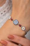 Papatya Silver Nazargöz Papatya Uğur Böceği Renkli Mineli Rodyum Kaplama 925 Ayar Gümüş Bileklik - Uvps200159