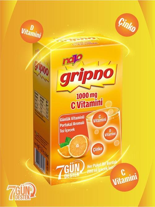 C vitamini, D vitamini ve Çinko içerir. Her kutuda 7 paket vardır ve her siparişte 3 kutu gönderilir. Her paket 200 ml bardak içindir.