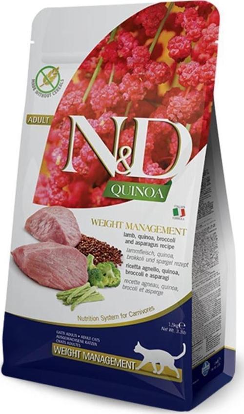 N&D Kinoa Kuzu Brokoli Ve Kuşkonmaz Yetişkin Kedi Maması 1,5 Kg