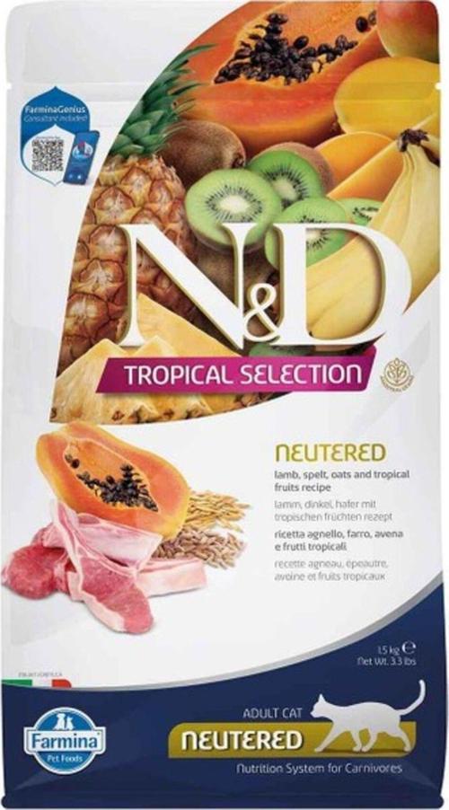 N&D Tropical Selection Düşük Tahıllı Kuzu Etli Ve Tropikal Meyveli Kısırlaştırılmış Kedi Maması 1,5K