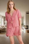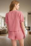 Yaz aylarının sıcak günlerinde bile rahat ve şık hissetmek ister misiniz? Bu nefes alan gofre dokuma pijama takımı ile evinizde huzurlu ve konforlu anlar geçirin. Kırmızı ekose deseni ve V yaka tasarımıyla feminen bir şıklık sunan takım, %68 polyester, %31 pamuk ve %1 elastan karışımı yumuşak ve dayanıklı kumaşıyla gün boyu konfor sağlar. Bağlamalı detay, takıma özgün bir dokunuş katar.