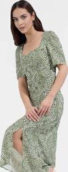 100% Viskoz kumaş, yumuşak dokusu ve nefes alabilir özelliğiyle gün boyu konfor sunar. Astarsız tasarımı, yaz aylarında ekstra ferah bir kullanım sağlar. Kolay temizlenebilir ve bakımı kolaydır, düşük ısıda makinede yıkanabilir. Elbisenin midi boyu, farklı ayakkabı modelleriyle kolayca kombinlenebilir ve her boyda kadına mükemmel uyum sağlar.