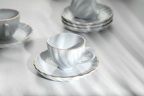 Nehir Yasemin Beyaz 12 Parça Porselen Kahve Takımı 92000