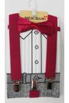 - Çocuklar için özel olarak tasarlanmış, bordo renkli ve şık bir askı papyon takımı.