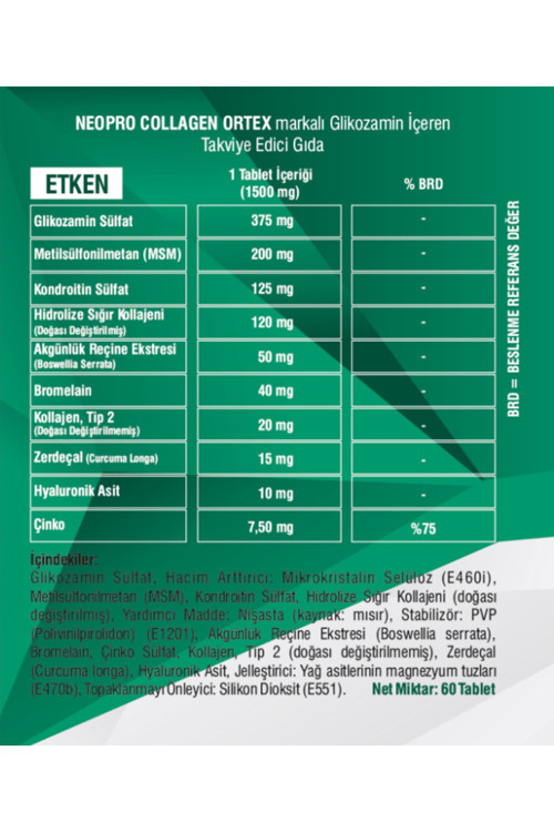 Neopro COLLAGEN ORTEX TABLET, GLİKOZAMİN İÇEREN TAKVİYE EDİCİ GIDA 60 tablet
