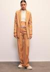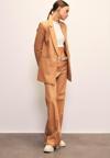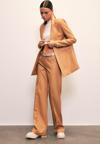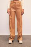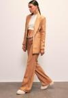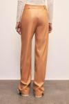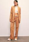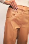 Normal bel, cepli, şardonlu, düğmeli fermuarlı kapama, bol paça, nervür detaylı deri pantolon.