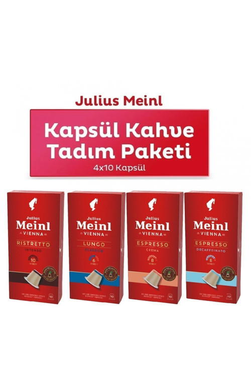 Julius Meinl Ncap Kapsül kahvelerinden oluşan tadım paketi. 10 x 4 adet. Toplam 40 adet kapsül bulunmaktadır.