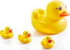 Renkli ve sevimli ördek figürlerinden oluşan minik bir aile seti, file ambalajında sunulur.