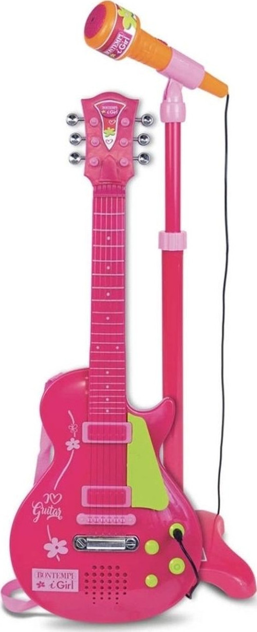 Elektronik Ayaklı Mikrofonlu Pembe Gitar