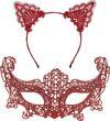 Kırmızı Dantel Kedi Kulaklı Maske ve Taç Seti – Şık Parti & Maskeli Balo Aksesuarı