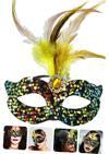 - Sarı tüyler ve sarı taşlar maskeye lüks ve göz alıcı bir görünüm kazandırır.