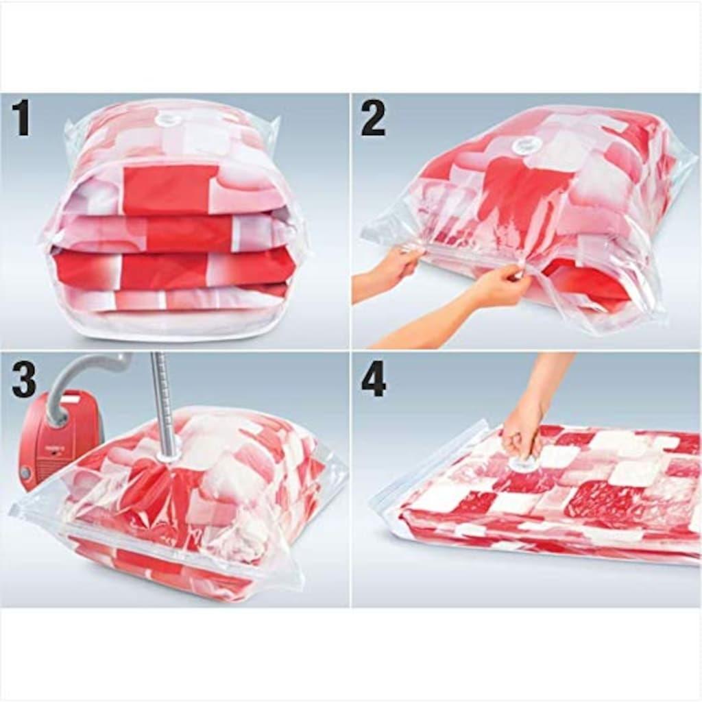 Valfin üzerindeki kapağı açın ve elektrik süpürgesinin borusunu boşluğun üzerine yerleştirerek süpürgeyi çalıştırıp istenilen vakum etkisi oluşana dek poşetin içindeki tüm havanın emilmesini sağlayın. Poşetiniz yeterli sıkışmayı yaptığında süpürgenin borusunu valften ayırarak kapağı kapatıp vakumlama işlemini sonlandırın.