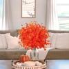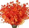 Netten Evime 6lı Set Yapay Çiçek Tam Turuncu Mineli Şimşir Lotus 7 Dallı Plastik Dekoratif Yapay Bitki