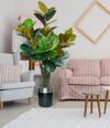 Netten Evime Yapay Ağaç Kauçuk Ağacı Metal Gümüş Kemerli Saksıda Ficus Elastica Salon Çiçeği 150*90 61 Yaprak