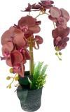 Yapay Çiçek 2li Islak Pastel Bordo Orkide Seramik Saksıda Orkide 60cm