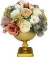 Netten Evime Yapay Çiçek Aranjmanı Büyük Boy Pudra Tonlar Gold Metal Vazolu Arajman Nişan Kız İsteme Çiçeği