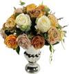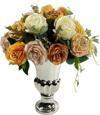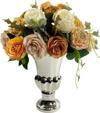 Netten Evime Yapay Çiçek Aranjmanı Krem Somon Kahve Rengi Gümüş Cam Kupa Vazoda Nişan Çiçeği İsteme Çiçeği