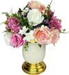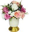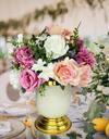 Netten Evime Yapay Çiçek Aranjmanı Metal Gold-Krem Vazolu Nişan Çiçeği İsteme Çiçeği Masa Üstü Çiçeği Arajman