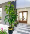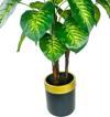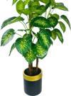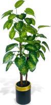 Netten Evime Yapay Çiçek Difenbahya Sarı Yeşil 3Katlı 160 cm 54Yaprak Gold Kemerli Siyah Saksıda Yapay Bitki
