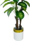 Netten Evime Yapay Çiçek Difenbahya Sarı Yeşil 3Katlı 190 cm 54Yaprak Gold Kemerli Beyaz Saksıda Yapay Bitki