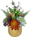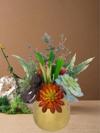 Yapay Çiçek Kaktüs Sukulent Aranjmanı Gold Antik Saksıda 10 adet Karışık Model Skulent