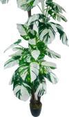 Netten Evime Yapay Çiçek Monstera Yeşil Beyaz Deve Tabanı 3Katlı 180 cm 54Yaprak Siyah Plastik Saksıda Yapay Bitki