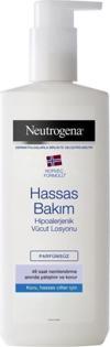 Neutrogena® Norveç Formülü Hassas Bakım Vücut Losyonu Faydaları Hipoalerjenik Formül Kuru bir cilt, kuru olduğu için aynı zamanda hassas da olabilir. Hassas bir cilt ise çevresel koşulların neden olduğu tahrişlere karşı daha duyarlıdır. Bu yüzden özel ilgi ve bakıma ihtiyaç duyar. Neutrogena® hassas ciltler için özel bir çözüm sunuyor: Kuru ve hassas ciltlere uygunluğu dermatolojik olarak test edilmiş, tek bir uygulamayla cildi 24 saat boyunca nemlendiren yeni Günlük Vücut Nemlendiricisi.