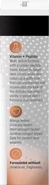 - Göz çevresi bölgesindeki şişliği ve koyu halkaların görünümünü azaltmaya yardımcı peptit karışımı ile hazırlanmıştır.