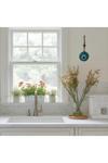 Bu şık nazar boncuğu, geleneksellik ve modernliği birleştiren tasarımıyla yaşam alanlarınıza estetik bir dokunuş kazandırır.