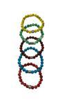 Elastik yapısı sayesinde bileğe kolayca uyum sağlayan bileklikler, sarı, kırmızı, mavi, yeşil ve bordo tonlarından oluşan estetik bir kombin sunar.