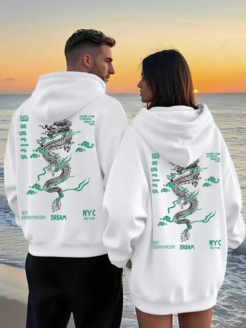 -Nevermind Ejderha desenli baskısı ile dikkat çeken bu sweatshirt, çiftler için özel bir tasarım sunar.