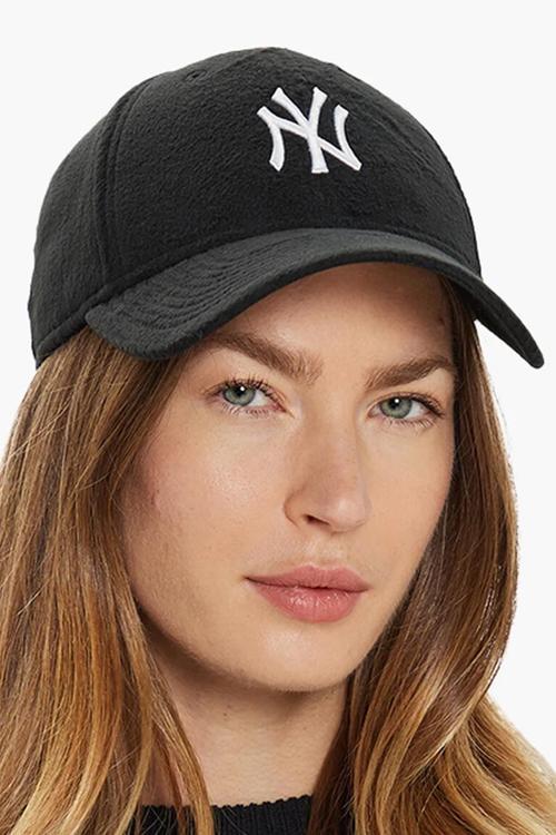 Efsanevi Amerikan markası New Era'nın geniş ve kavisli siperliğine sahip bu kadın New York Yankees MLB beyzbol şapkası siyah kadifemsi peluştan üretilmiştir. Ön panelinde, Amerika'nın en başarılı profesyonel beyzbol takımlarından biri olan NEW YORK YANKEES'in tanınabilir logosunun 3 boyutlu beyaz işlemesi yer almaktadır. New York Yankees, 1901'den beri Major League Baseball'de oynamaktadır ve takım, şarkıcı Beyoncé, rapçi Jay-Z, aktör Macaulay Culkin, Limp Bizkit solisti Fred Durst, yönetmen Spike Lee ve daha birçok ünlüyü bünyesinde barındırmaktadır. Yan tarafında NE marka logosunun beyaz işlemesi yer almaktadır. İç kısmında, bu markanın lisanslı spor giyim satıcısı olduğunu gösteren bir işaret olan Genuine Merchandise yaması bulunan yumuşak dolgulu bir bant bulunmaktadır. Siperliğin iç kısmı siyah dimi kumaştan yapılmıştır. Şapkanın boyutu bir kayış ve markalı metal toka ile ayarlanabilir. Siperlik uzunluğu 7 cm, beyzbol şapkasının derinliği ise 11 cm'dir. New Era, büyük Amerikan liglerinin özel partneri ve şapka alanında lider bir markadır.