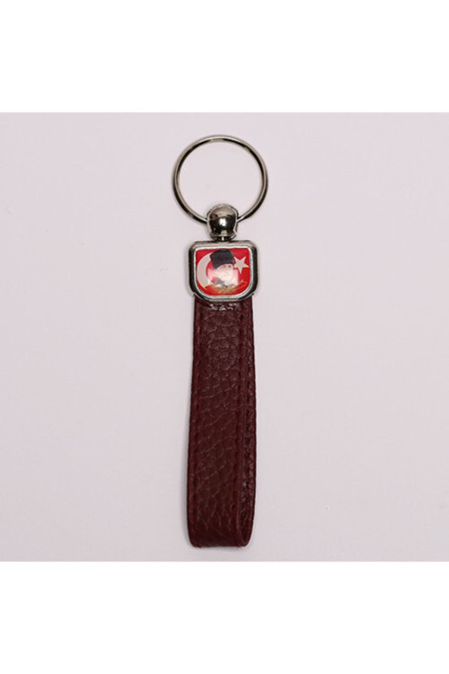new life promosyon nl Koyu Kahverengi Deri Saplı Çelil Anahtarlık