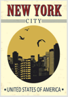 New York City'nin ikonik şehir manzarasını sade ve retro tarzda sunan bu tablo, modern dünyanın başkentini nostaljiyle buluşturuyor. Gökyüzünde süzülen kuşlar, sarı-gold dairesel güneş efekti ve klasik serif yazı tipi ile tasarım, hem zarif hem iddialı bir görünüm sunar.