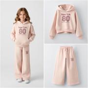 Şıklığı ve rahatlığı bir arada sunan bu kapüşonlu eşofman takımı, kız çocuklar için günlük kullanıma ideal bir seçimdir.
