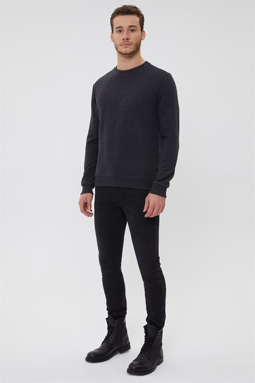 Newdwade Erkek Bisiklet Yaka Sweatshirt Antrasit Melanj