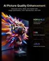 - İnanılmaz Kontrast: Yapay Zeka Görüntü Kalitesi Geliştirme, gürültüyü azaltmak, ton eşlemesini optimize etmek ve ayrıntıların netliğini artırmak için gelişmiş algoritmalar kullanır. Canlı renkler ve dinamik ayrıntılar için D65 kalibrasyonu, HDR ve HLG ile doğru renk üretimi sağlar. 3000:1 yüksek kontrastı ise en derin siyahlardan en parlak beyazlara kadar sahneyi canlandırır.