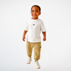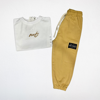 Minik beylerin enerjisine ayak uyduran sade ama şık bir kombin! Oversize kesimli ekru tişört ve bej jogger eşofman altı, hem rahatlığı hem tarzı bir arada sunuyor. Gün boyu konfor ve hareket özgürlüğü isteyenler için ideal.