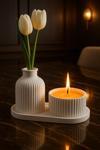 Neydin Home Dekoratif Vazo & Gül Kokulu Mum & Sunumluk Seti (ÇİÇEKLER DAHİL DEĞİLDİR.)