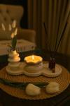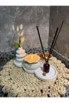 Neydin Home Minimalist Dekoratif Fruit Fresh Kokulu Mum Seti & Oda Kokusu, Taş Vazo ve Özel Tasarım Tepsi ile